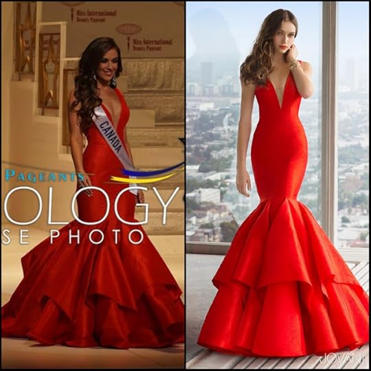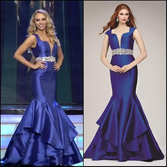 Michele Hajal: Michele's gown was similar in shape to the contestant I discussed before her. But here, the sequin applique was done right! It didn't focus on her you-know-what but instead, the embellishment was distributed quite evenly throughout. The raspberry color is quite pretty and the fit is perfection--notice how right-to-the-floor it is! Ladies: Take note--a long gown should always end there with no shoes visible...unless of course, it is a Hi-lo style.