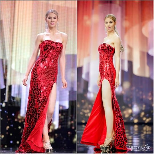 Two nights ago was the Preliminary Competition for the Miss Grand International 2020-2021 beauty pageant. The pageant, being held in Bangkok Thailand, is the first of the "biggies" (like Miss Universe, Miss World, Miss International) being held during the COVID pandemic. The organizers took many precautions for the pageant and the safety of the contestants, having them all be quarantined for weeks in their hotel rooms until it was time to safely do the pre-finals activities. Now, back to the pageant... I blogged about my TOP 15 in National Costume HERE, and now it's time to discuss my FAVORITES in Evening Gown from the Preliminaries...