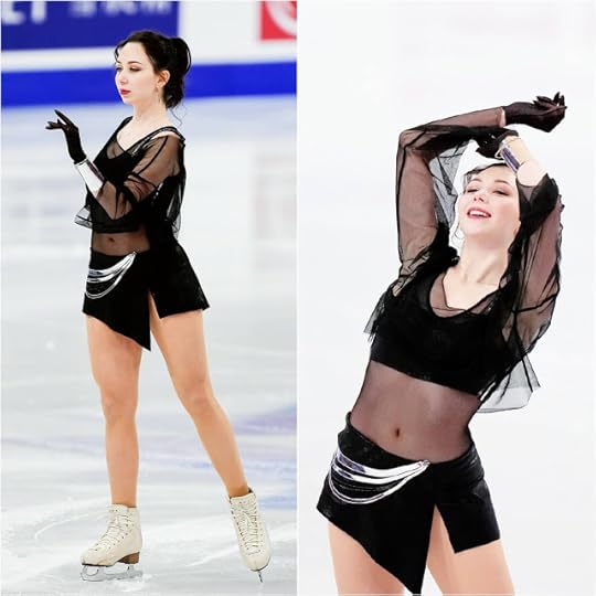 ...As her skate neared its second half, I was waiting for her to do the release of her sleeve thorns which was a highlight (for me) of her skate and costume...however...it never came. It seems that the Russian Federation might have gotten some "costume notes" from previous judges who possibly suggested to not have that (maybe too gimmicky??)...Oh well...because I liked it!