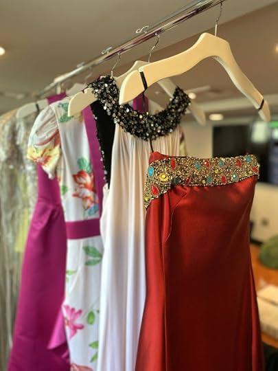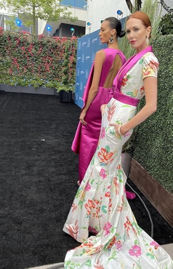 With all that, I was invited to talk about what we might see in this new "different" way of doing the Red Carpet, and I brought four models with me in designs from our NIKOLAKI line, to talk about gown trends in the ZOOM age.