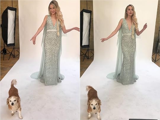 NIKOLAKI Mascot--"Benny", our little pupster, makes an appearance during the photoshoot, with model Brianna Branes in our NIKOLAKI "Elsa"-inspired silk sequined gown-- DISNEY X FIDM: Frozen II Collaboration, The L.A. Loft Photo Studio West Hollywood