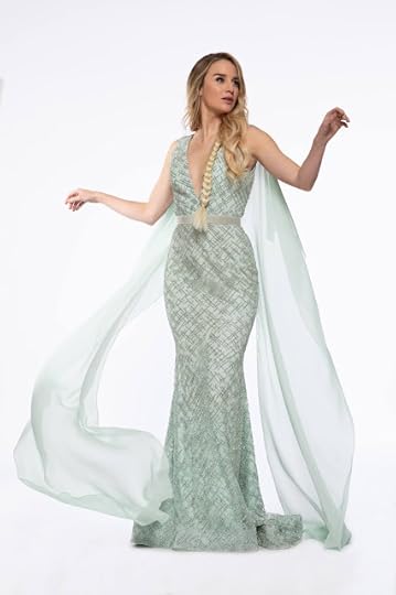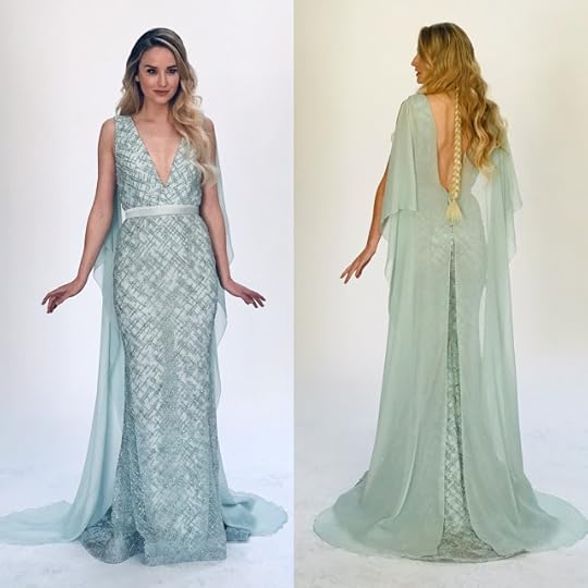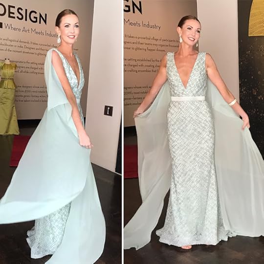 Mint Princess--Model Amanda Fields Bennett in NIKOLAKI mint-colored silk crepe satin gown with crystal sequined netting and silk chiffon capes--FIDM "3 Days of Fashion, Innovation & Design: Online", FIDM Museum Los Angeles