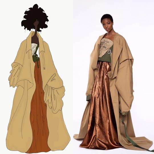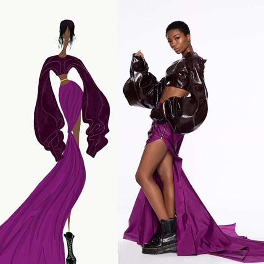 Wind Style--Fashion Sketch and Design from FIDM Designer Tomy Huang, inspired by "Gale"/Wind Element (lower photo) in "Frozen II"--Disney X FIDM: Frozen II Collaboration, L.A. Loft Photo Studio, West Hollywood