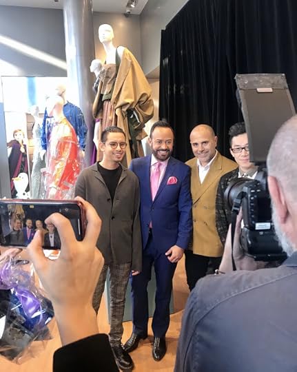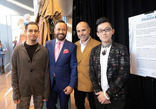 That's a Wrap!--(L to R) FIDM Fashion Design Co-Chairs and NIKOLAKI Designers David Paul and Nick Verreos, and FIDM Designers Tomy Huang and Paul Hernandez--Window Unveiling at Disney Store Westfield Century City of Disney X FIDM: Frozen II Collaboration