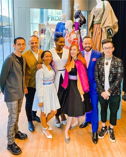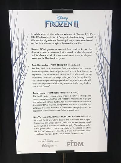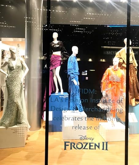 On Part 4 of my BLOG on the DISNEY X FIDM: FROZEN II Collaboration , it's time for the WINDOW UNVEILING!!!! If you have been following my BLOG here, I have been posting all the behind-the-scenes and backstory on the recent design collaboration between Disney and the Fashion Institute of Design & Merchandising/FIDM for the Blu-ray release of "Frozen II" . After all the pre-research, filming of our inspiration, and several; weeks of designing the fab garments to pay homage to the four Elements (Water, Wind, Fire, and Earth) of "Frozen II"--as well as "Elsa" ...it was time to showcase the designs in a one-of-a-kind window/store display at the Disney Store in Westfield Century City!