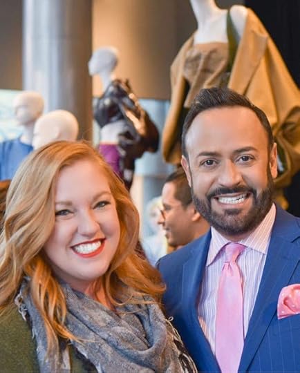 We're LIVE!--Nick Vereros and model Amanda Fields Bennett in NIKOLAKI gown, during the FIDM "3 Days of Fashion, Innovation & Design: Online" event--FIDM Museum, Los Angeles