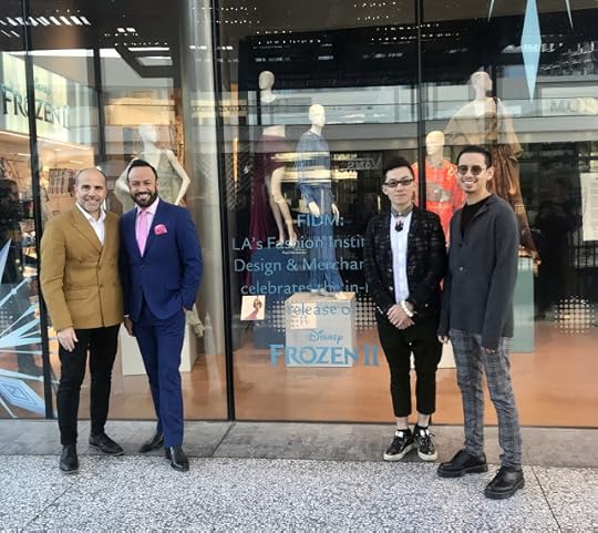 FIDM Fashion Design Co-Chairs and NIKOLAKI Designers Nick Verreos and David Paul with FIDM Designers paul Hernandez and Tomy Huang--Window Unveiling at Disney Store Westfield Century City of Disney X FIDM: Frozen II Collaboration