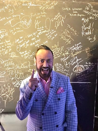 Backstage--Nick Verreos in front of the "autograph" board--The Kelly Clarkson Show, Universal Studios
