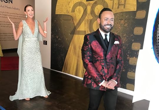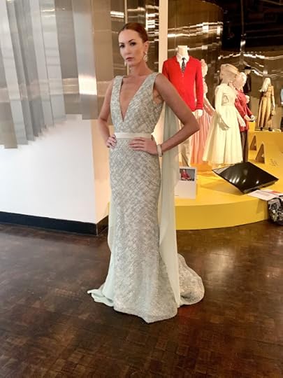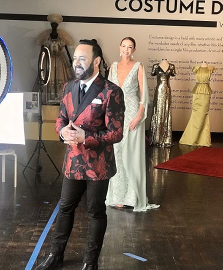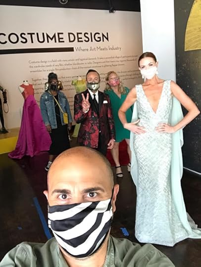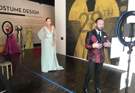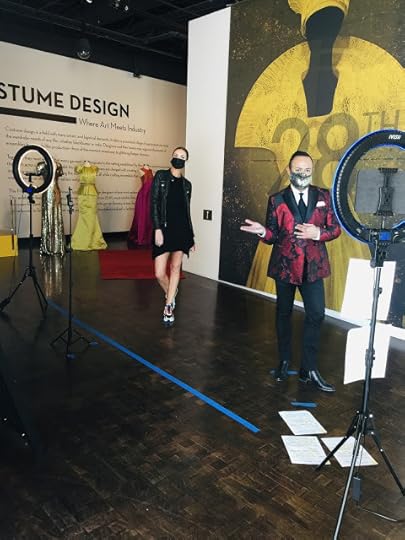I MC'ed/hosted the event--as if I was standing in front of hundreds of students (this time, they were all ONLINE!) and brought one of my favorite models, Amanda Fields Bennett , to wear my NIKOLAKI gowns, for a very special fashion show presentation. We did it all while social distancing, making sure to stay 6 feet apart. And...we kept the "crew" to a bare minimum, including myself, the model, my Co-Chair bestie David Paul, our Assistant Chairperson Jonie Thomas, and Tanya Buzalsky, Regional Director of Special Events at FIDM Speakers Bureau.