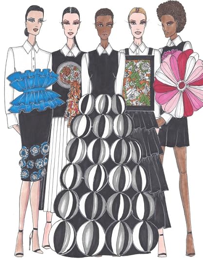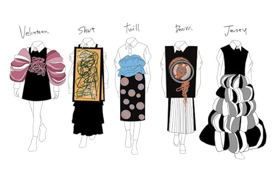 Sketches--Sakura Mizutani sketches of the five Supima cotton designs: (L to R) velveteen, Shirting, Twill, Denim and Jersey