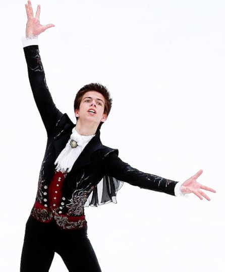 Petr Gumennik of Russia Free Skate to The Phantom Of The Opera by Andrew Lloyd Webber--Last but certainly not least--in the COSTUME category--is Russian Petr Gumennik. Here, for his "Phantom of the Opera" (of course!) Free Skate, he made me proud with this stunning expression of design in his VERY "Phantom"-like costume featuring a black fitted jacket, an intricately trimmed red waistcoat (vest), white lace foulard blouse, and black pants. The costume looked expensive and could have easily gone Boadway cheesy....but it didn't. I especially loved the fluttery chiffon mini capes.