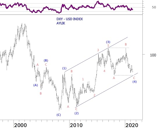 Dolar bazlı BIST100’de düşüş dalgasının bitişi henüz teyit edilmedi. Yaklaşık iki senedir 130-210 bölgesinde bir taban oluşturma çabası var. Yükseliş kanalı kırılırsa 2007 Ekim’inden beri devam eden orta vadeli düzeltmenin 2020 yılı içinde görülen diplerden birinde sona erdiğini varsaymak gerekiyor. Alternatif sayıma göre bir düşüş dalgası daha gelebilir. Bir düşüş dalgası daha gelirse, bu dalganın 100-120 bölgesinde sona ermesini beklerim.