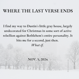 It's officially release day for my little contemporary Christmas novella slice-of-life, Where The Last Verse Ends! It's a cutesy novella, a quick read, and the perfect super-sweet story to curl up with a cup of coffee with. You can snag a copy for $0.99 today, before the price goes up tomorrow! It's also available in paperback format as of today.