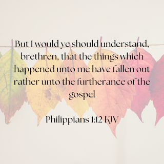 Good overcomes evil. It's easy to say, easy to hope for, but when the rubber meets the road--what about then? When you're faced with difficulty and asking why, it's not an easy pill to swallow, right? I was really struck with that while studying Philippians 1:12 and surrounding sections for a WIP I'm working on and wanted to share. Because Paul knows a few things about turning evil for good, and just how the Lord manages to work through and despite trial and difficulty and thorns in sides and persecution the likes of which the Church hasn't seen for a long time.