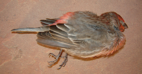 Dead finch on my porch. Photo by Subhankar Banerjee, 2006.