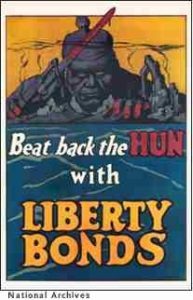 An ad encouraging Americans to buy war bonds to help defeat the “Hun,” a pejorative term for Germans.