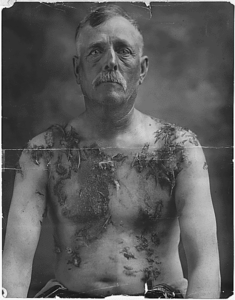 John Meints, a German-American who farmed in Minnesota, is shown after being tarred and feathered in 1918. The vigilantes who brutalized him were celebrated in the press, and no one was ever prosecuted.