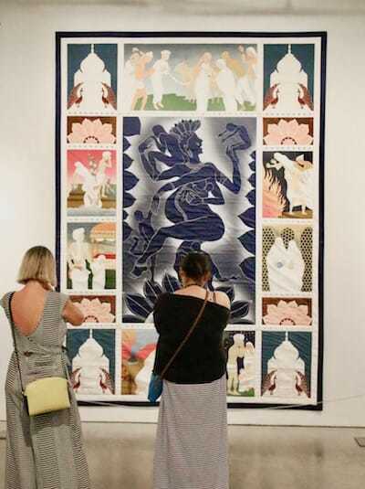 Judy Chicago’s “Mother India” depicts images from Hindu narratives and features replicated panels with the image of the Taj Mahal on each corner. (Jordan Riefe)
