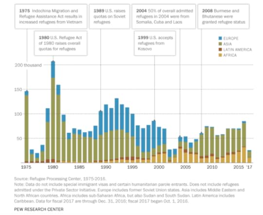 The political character of US refugee admittances stretches back into the mists of time. In the 1970s, the US let in a lot of refugees from South Vietnam, in part to reward families that had supported the US war there and in part because the “boat people” crisis that developed when Vietnamese fled to southeast Asian countries that put them in camps.