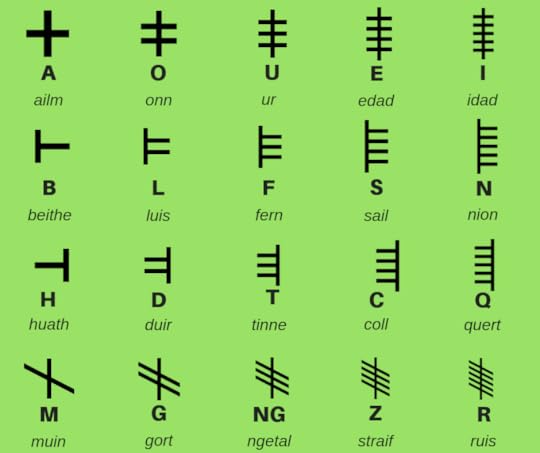 The Ogham alphabet consists of twenty letters and a further five supplementary letters. The twenty letters, seen to the left, are the ones I used for Summer’s magic. In the books, I have used the Celtic names for the runes and not their Welsh names, as the Celtic names are more well known.