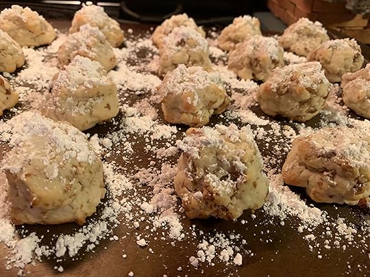 I know this plate of Russian tea cakes, also known as Mexican wedding cakes, looks messy, but they are soooo good! Ironically, these flour cookies were similar to an English dessert from the Middle Ages and neither originated in Russia or Mexico. Either way, they have become a popular American sweet during Christmas. I know it’s one of my favorites!