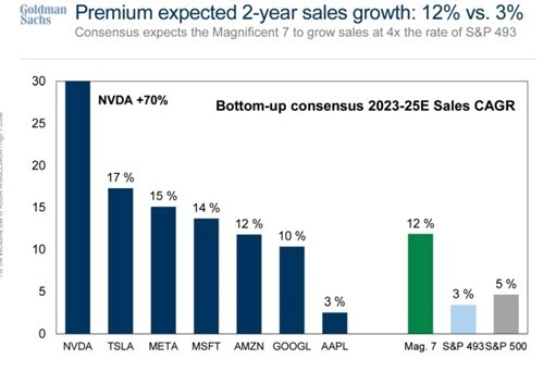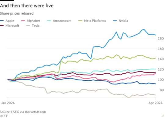And the Magnificent Seven is losing members: Apple (falling I-phone sales especially in China) and Tesla (falling EV sales as Chinese EVs take over).