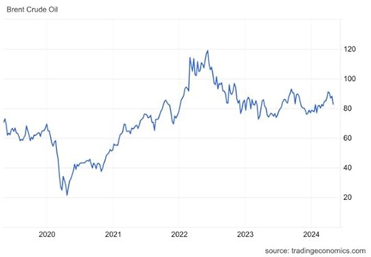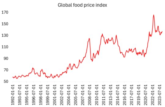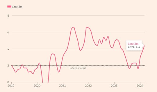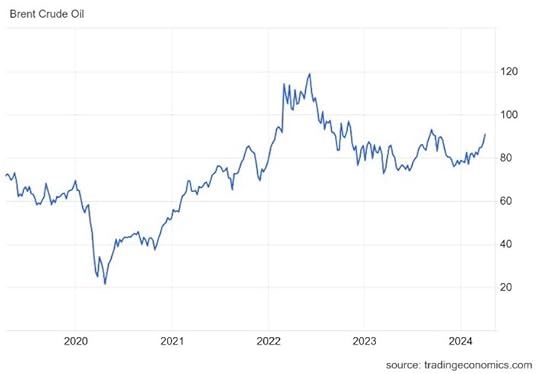 And the reasons are two-fold. First, food and energy prices have started to rise again. Oil prices have picked up as the Houthis attack shipping in the Red Sea and Israel extends the war in Gaza towards Iran.