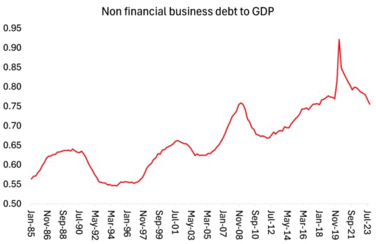 But for the health of capitalist investment and production, it is the level of non-financial business debt that matters, not the public debt. US non-financial business debt is near all-time highs.