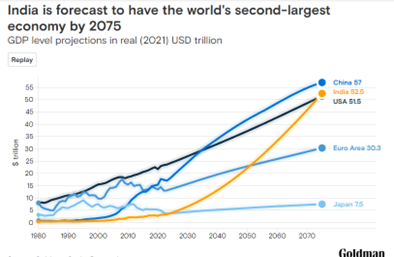 The forecast is that India will grow even faster while China’s growth slows and soon India will contribute more to global growth than China. India will take over China’s lead in manufacturing and technology and thus prove that a privatized, free market economy can triumph over a state-led planned one that is China. According to Bloomberg Economics, India could become the world’s No. 1 contributor to GDP growth as early as 2028 as India’s economic growth will accelerate to 9% by the end of this decade, while China will slow to 3.5%!