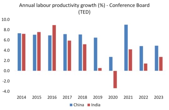Productivity growth has been falling for most of the years under the Modi government. Since Modi came to office, India’s average labour productivity growth has been 4% a year; China’s 6.3%.