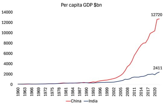 And just compare India’s per capita GDP with that of China. It’s all you need to know about ‘catching up’! Note that China and India had more or less the same per capita GDP back in 1990.