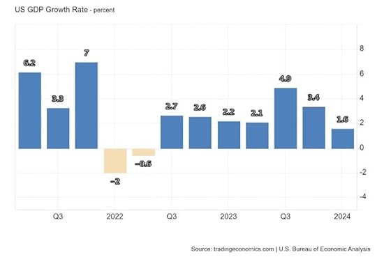 Where to now? The risk now is that the US economy could slow down towards stagnation in output while inflation stays ‘sticky’ because of a new rise in commodity prices. The US economy ended last year growing in real terms (ie after accounting for inflation) at an annual rate of 3.4%. This was greeted with euphoria by the mainstream and the financial media. “The U.S. economy is performing very well…We’re truly the envy of the world.” said one EconForecaster, James Smith. But then in the first quarter of 2024, that real GDP growth annual rate slowed to 1.6%, the slowest rate since the first half of 2022.