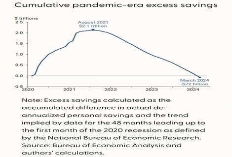 The ‘excess savings’ that households built up during the pandemic lockdowns appear to have been exhausted.