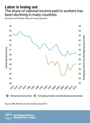 First, the bad news. From the 1980s, when the policies of neoliberalism were imposed by governments in all the major economies and often followed in the rest of the world, labour’s share of national income in most countries fell.