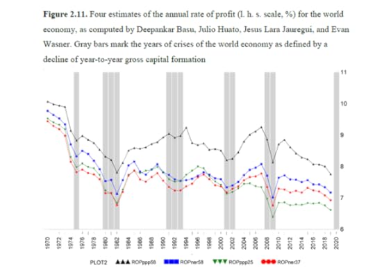 Tapia’s own work shows that the rate of profit on capital in the years immediately preceding the six crises that he identifies led to a fall in profits “that in turn leads to falling investment and the subsequent outflows of money toward speculative activities and hoarding have been repeatedly found at the level of national economies that profitability declines coinciding with every run into recession, for instance, profits peaked in 2007 and started to decline immediately before the Great Recession; after recovering in the early years of the next decade, they reached another peak in 2017 and since that year they started a decline that was indeed announcing a crisis when the economy was closed down by the COVID-19 pandemics.”