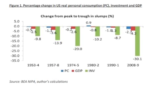 Tapia argues that Mitchell and Tinbergen were following Marx by saying and showing empirically that the movement in productive investment drove capitalist economies and that investment depended on the movement in the profits of accumulation. “Since the early studies on the business cycle, it is known that both consumption and investment grow in the upturn and fall in the downturn of the cycle, but investment is a more volatile variable and the drop in investment in the recession is more pronounced. Indeed, the share of consumption in GDP usually grows in recessions, as investment decreases sharply and GDP itself stagnates or shrinks.” When there was a sufficient reduction of average profitability, that would reduce investment leading to a collapse in production and demand so that a recession or crisis ensued.