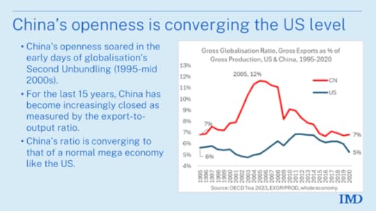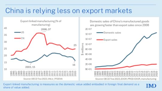 But what that shows is that Chinese manufacturers remain highly competitive in world markets, despite all the efforts of the West to impose tariffs and other protectionist measures. China is doing particularly well in electric vehicle production, solar energy and other green technologies. But as Baldwin points out, this export success does not mean that China depends on exports for growth. China is growing mainly because of production for the home economy, like the US.