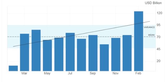 Western experts go on about the size of China’s export surplus, namely that the current account (the balance of receipts from abroad against payments), claiming that the surplus is as high as 4% of China’s GDP. And China’s exports are 15% of the world total. And just in the last month exports rose over 7% so that China’s balance of trade with the rest of the world reached an all-time high of $125bn in February.