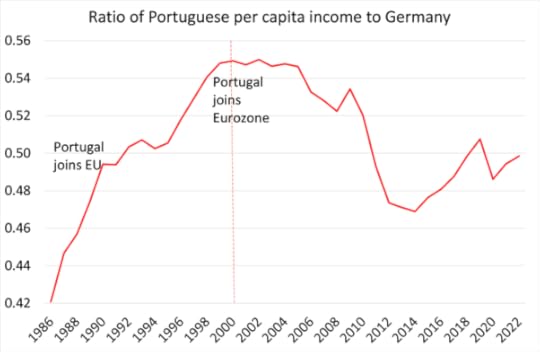 Portugal’s economy has been falling behind the rest of the EU since 2000. The European Union supposedly aimed to ‘level up’ the weaker capitalist economies with the richer core. The opening of trade and investment after Portugal became a member in 1986 appeared to work, as it did for other weaker EU countries. But the introduction of the euro changed all that. Whereas before the weaker EU countries could let their currencies depreciate against the deutschemark to try and remain competitive. That was no longer an option in the Eurozone. Without higher investment and productivity, the weaker capitalist members could not compete. Convergence turned into divergence. Portugal like other weaker members was reliant on FDI from Germany and France. External debt rose sharply and the Euro debt crisis in 2012 in the wake of the global financial crash pushed the country into penury and austerity. Portugal’s GDP per person remains less than half that of Germany.