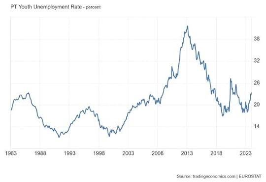 Meanwhile low wages and high unemployment have spurred emigration. Over the past decade – a period that includes governments run by both the Socialists and the ‘centre-right’ Social Democrats – some 20,000 Portuguese nurses have gone to work abroad, in an unprecedented drain of medical talent. The youth unemployment rate is still near 25%.