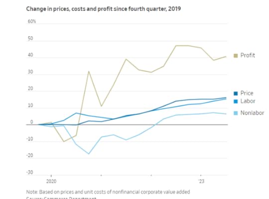 The evidence is overwhelming that the post-COVID inflationary spiral enabled many companies to hike the prices of their products considerably so that profit margins rose sharply because wage rises did not match price increases. Inflation bit into the living standards of most American households, but not into the profit margins of the US multi-nationals and mega firms.
