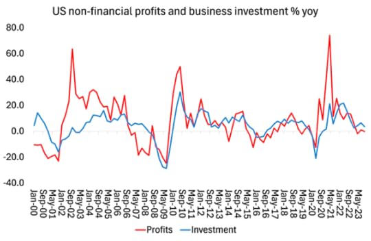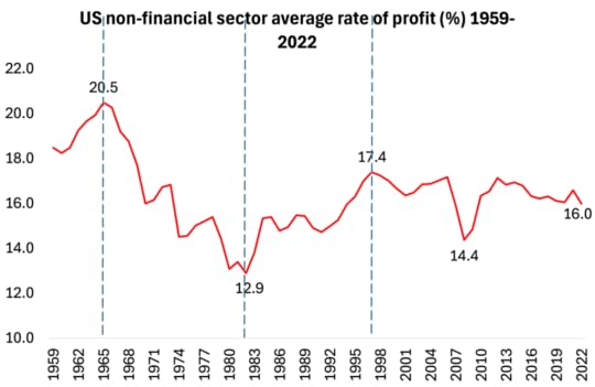 And if we calculate the average rate of profit on US non-financial sector capital, we find that there has been a general decline since 2012 (2023 is my estimate).