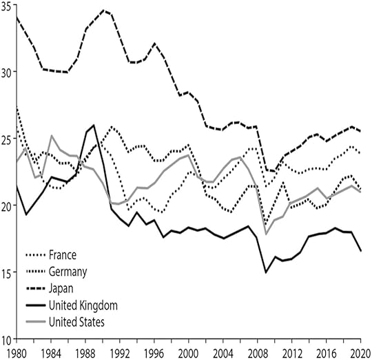 Over the period 2002-2020, US NFC debt to GDP rises. Germany and Japan’s ratio in 2020 is the same as in 2002. France’s rockets. Only the UK shows a significant decline. The Collective says that “Financial speculation involving the working class of the USA – often its poorest metropolitan layers – and pivoting on shadow finance, was the prime culprit of the huge bubble that led to the collapse of 2007–09 and the ensuing global crisis. The uniqueness of this development in the history of capitalism cannot be overstressed.” Well, just maybe it is being overstressed.