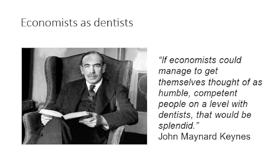 This is a common theme among economists. Another recent Nobel prize winner, Esther Duflo, reckoned economists should give up on the big ideas and instead just solve problems like plumbers “lay the pipes and fix the leaks”. Economists were more like engineers than physicists. Keynes made a similar point: that economists should be like dentists – sorting out troublesome teething problems so that capitalism can then run smoothly.