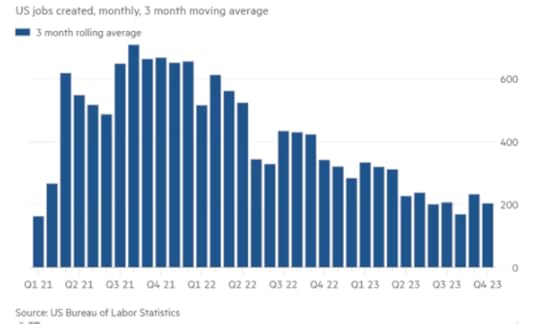 2024 could also be the year when the impact on productivity and jobs of the rise of generative AI becomes clearer. The techno-optimists like Goldman Sachs are drooling at the prospect of sharp increases in US productivity growth over the rest of this decade, mainly achieved by massive reductions of jobs in many service sectors.