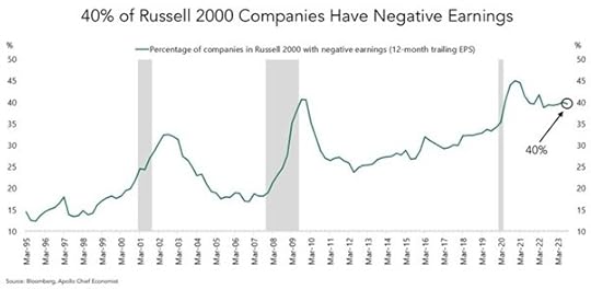 Indeed, 40% of the top 2000 companies in the US now have negative earnings.