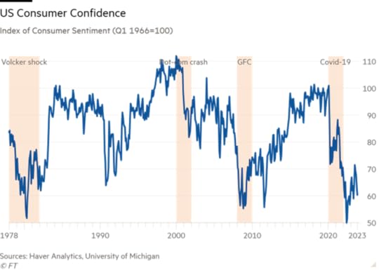 The optimists are puzzled at why Americans, on the whole, are very pessimistic about the US economy despite their rosy picture. The explanation they have come up with is that US households are either stupid or biased politically against the Biden administration!