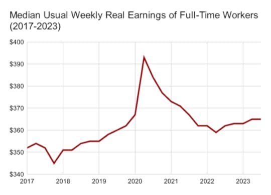 All that has happened is that the rise in price levels is slowing and now wages are rising to match or surpass current inflation. But wages have not risen enough in the last three years to compensate for that 17.5% rise in prices.