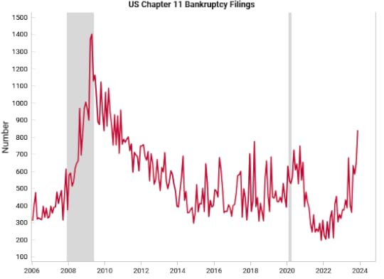 So the GS economists may be taking a victory lap over their forecast that the US economy would avoid a recession in 2023 that many others (including me) thought was coming, but the underlying fault lines in the US economy remain and are likely to surface in 2024.