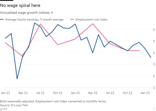 But as I have said in previous posts, the GDP measure seems a bit of an outlier compared to the measure of economic activity based on gross domestic income (GDI). There has been no growth at all in real national income (i.e. profits plus wages). If we average these two different rates, then US economic growth has been about half the GDP rate and considerably slower than in 2022.